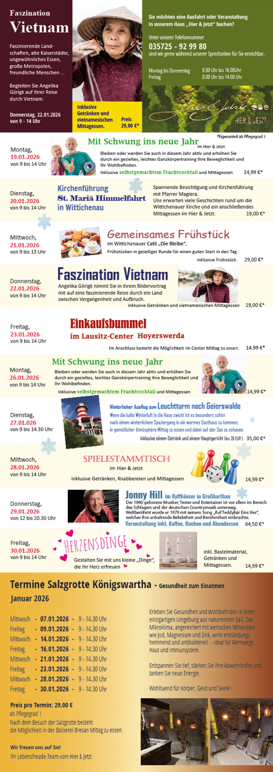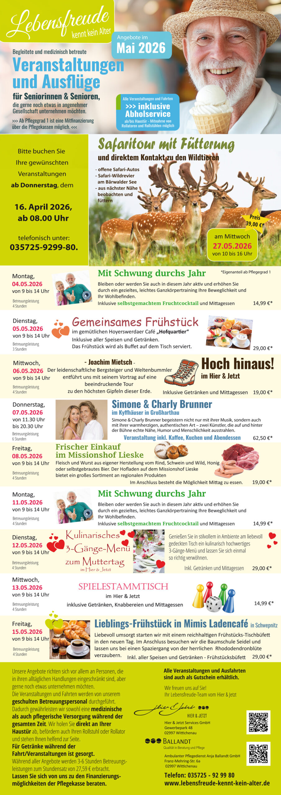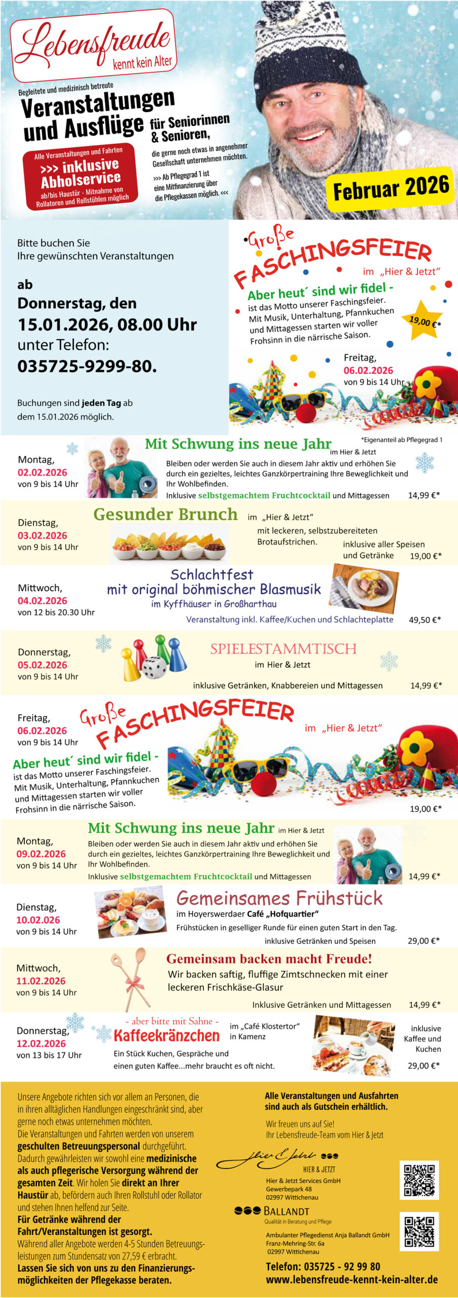 Alle Veranstaltungen und Fahrten sind inklusive Abholservice ab/bis Haustür.